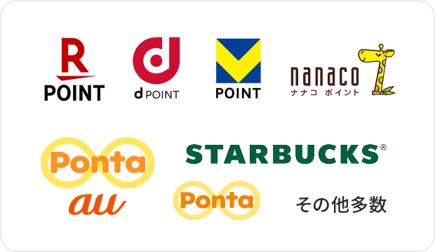 他社ポイントへ交換(受付単位:100枚から)提携する各ポイントサービスに交換できます。交換できるポイントサービスは多数!