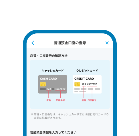 口座へキャッシュバック(受付単位:100枚から)アプリ内の貯蓄用口座にキャッシュバックできます。キャッシュバック完了後はアプリ上で普通預金へ振替可能です。