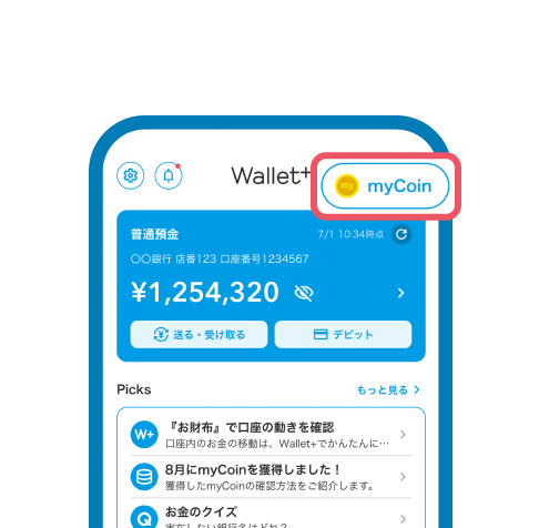 とは?myCoin1枚=1円としてご利用可能です。残高はウォレットプラスアプリで確認ができます。