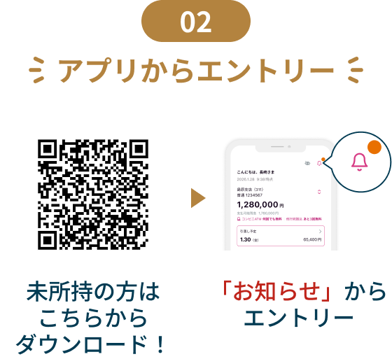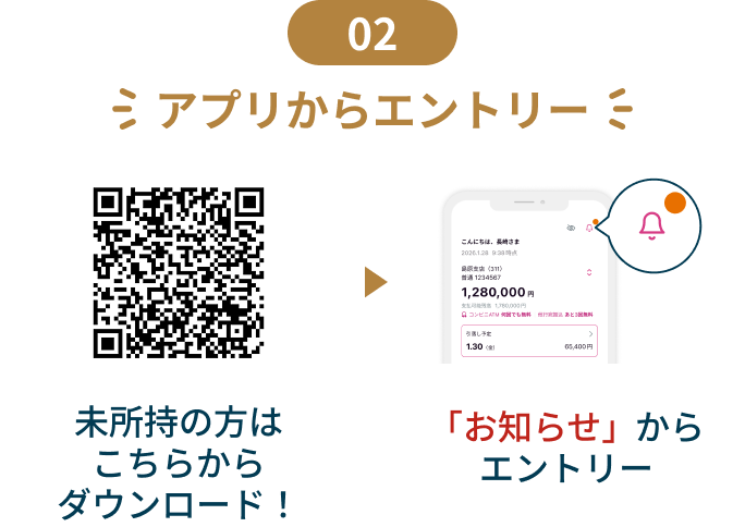 ・キャンペーン期間中に十八親和銀行アプリからキャンペーンにエントリーください。