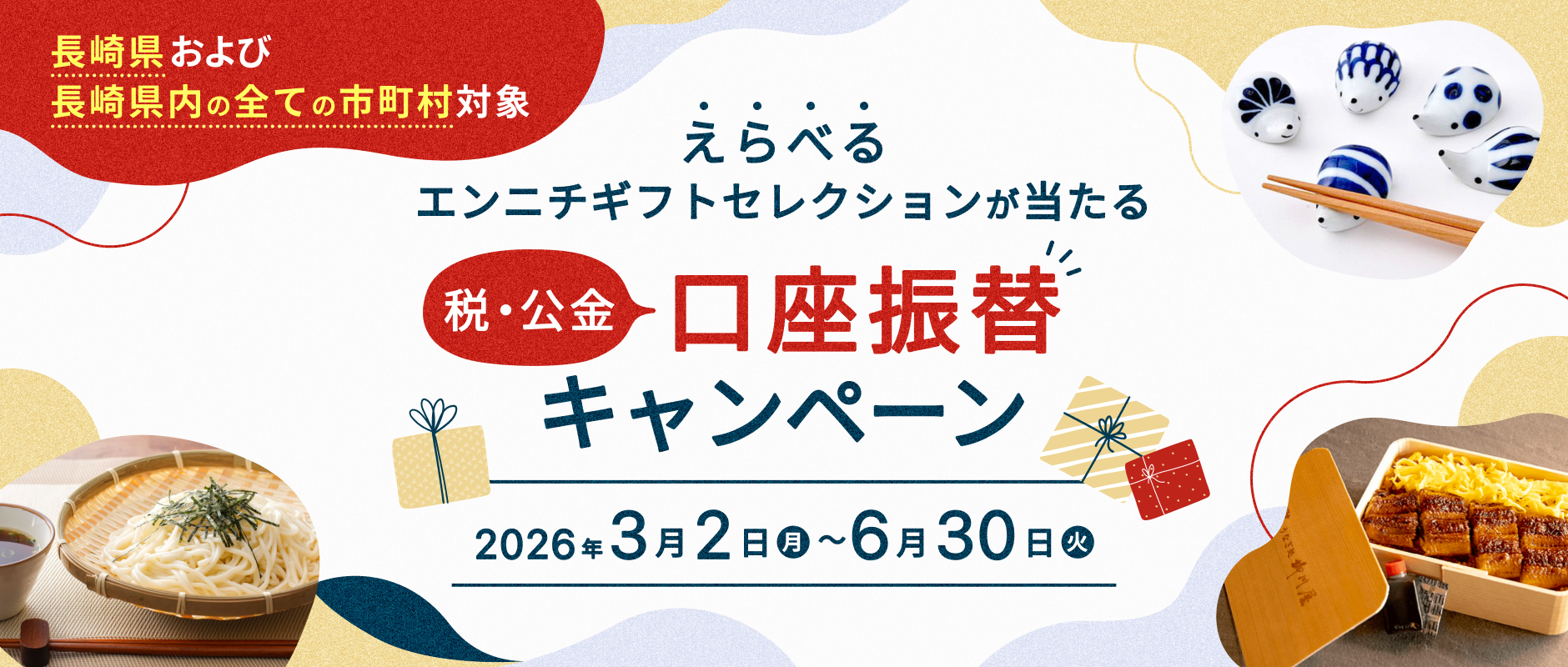 ・キャンペーン期間中に十八親和銀行で、長崎県及び長崎県内の市町村のいずれかで税・公金の口座振替を新規お申込みいただいた方が対象となります。