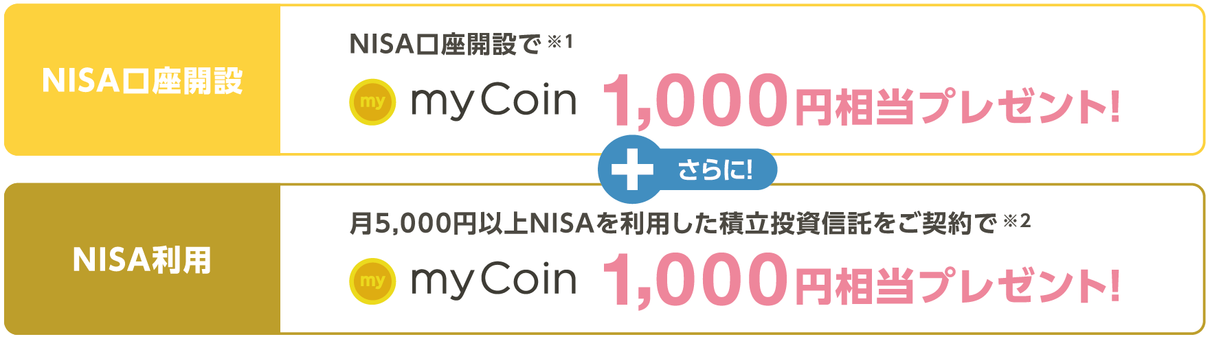 上記の対象者のうち月5,000円以上のNISAを利用した積立投資信託のお申込みが本フェア期間中に完了しており、2026年3月31日時点でNISA口座および積立投資信託の契約があること