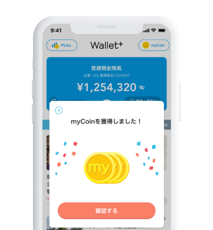 - ※myCoinとはマネーアプリWallet+を提供するiBankマーケティング株式会社(株式会社ふくおかフィナンシャルグループの連結子会社)が運営するポイントサービスです。(myCoin1枚/1円換算)