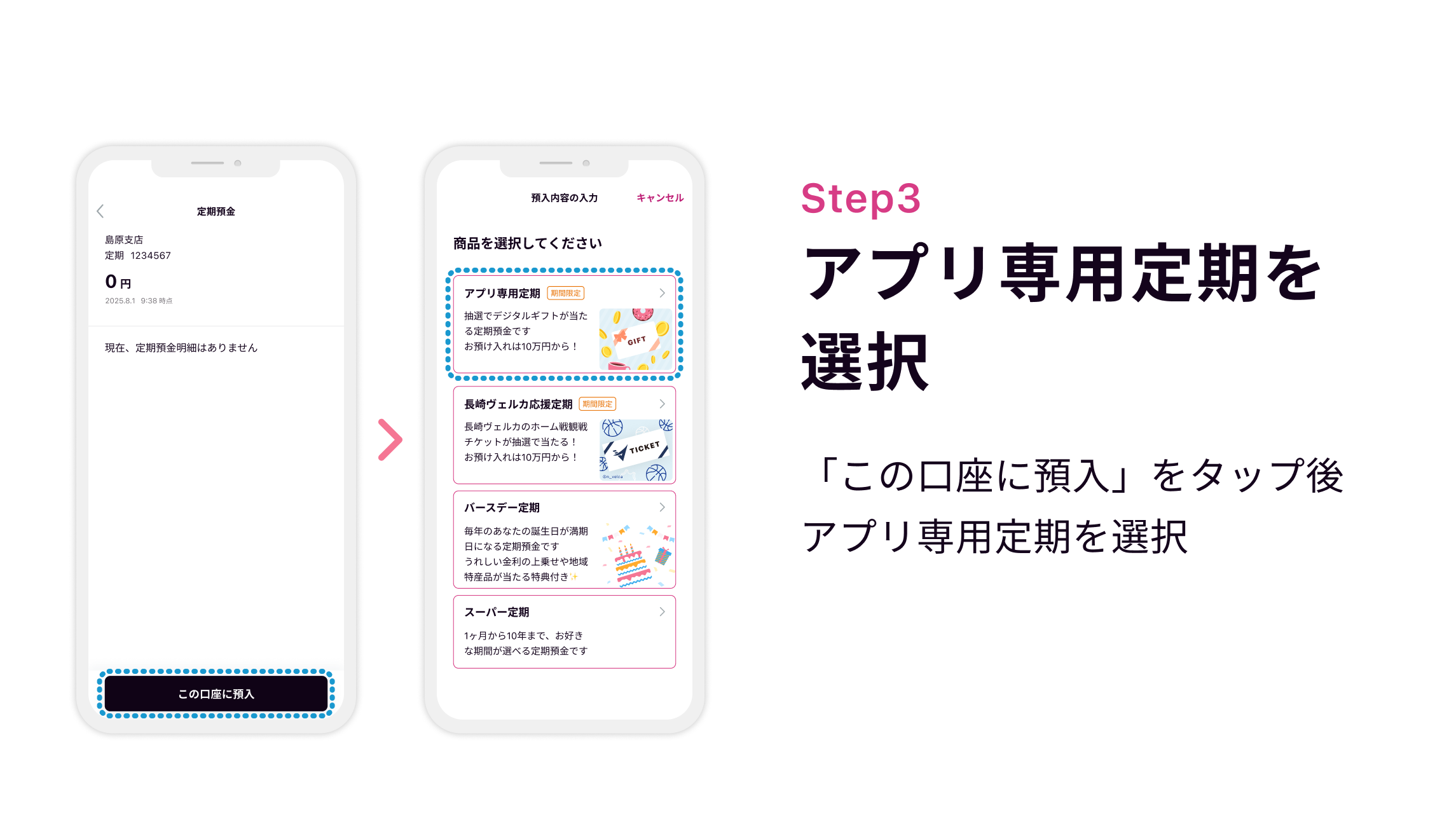 - 期間中に「アプリ専用定期預金」へ10万円以上ご預け入れいただいた方が対象です。
