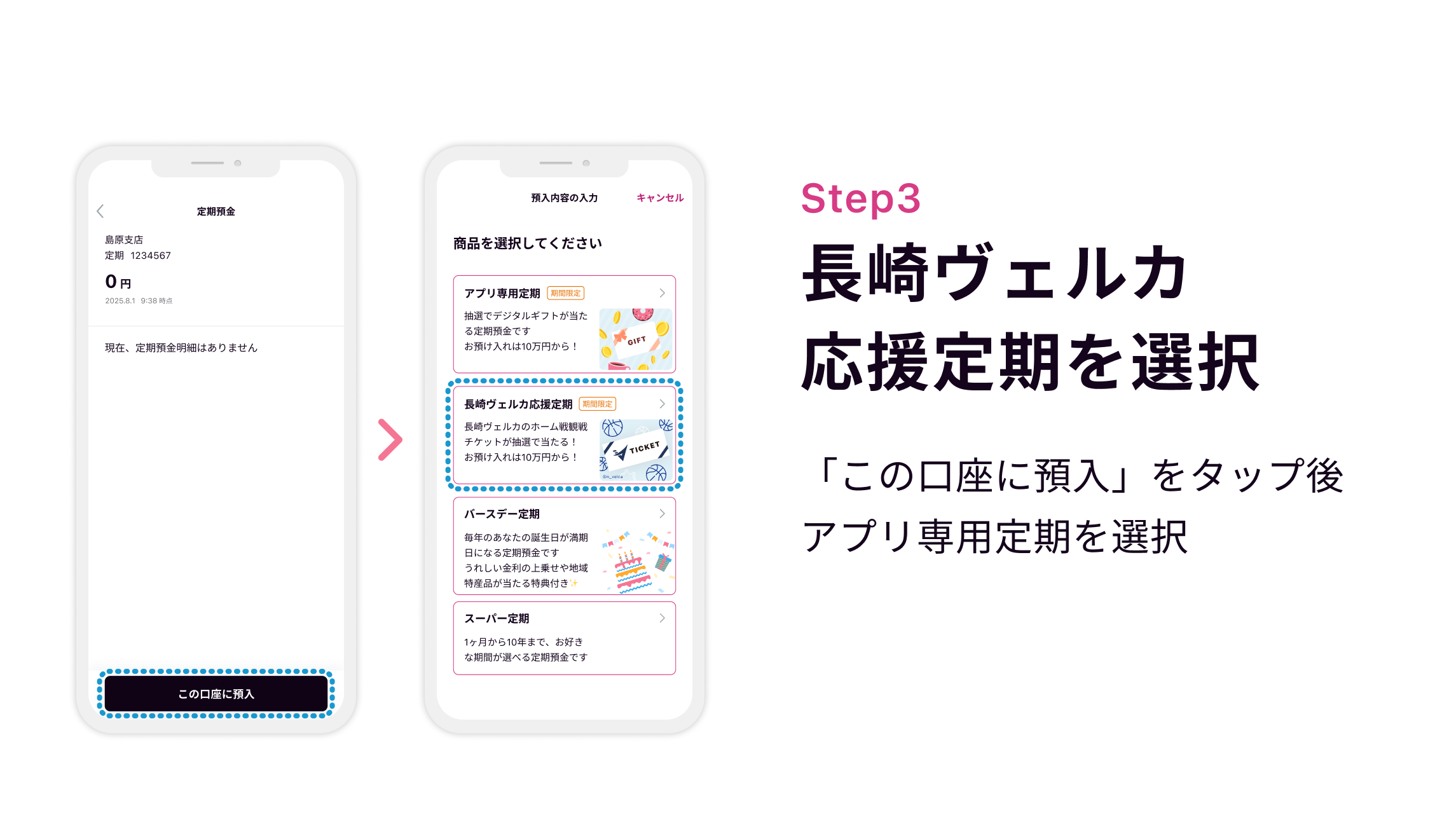 期間中に「長崎ヴェルカ応援定期」へ10万円以上お預け入れいただいた方が対象です。(エントリーが必要)抽選日時点で解約されている場合は対象外となります。なお抽選は、十八親和銀行所定の方法により、2026年1月中旬に実施予定です。
